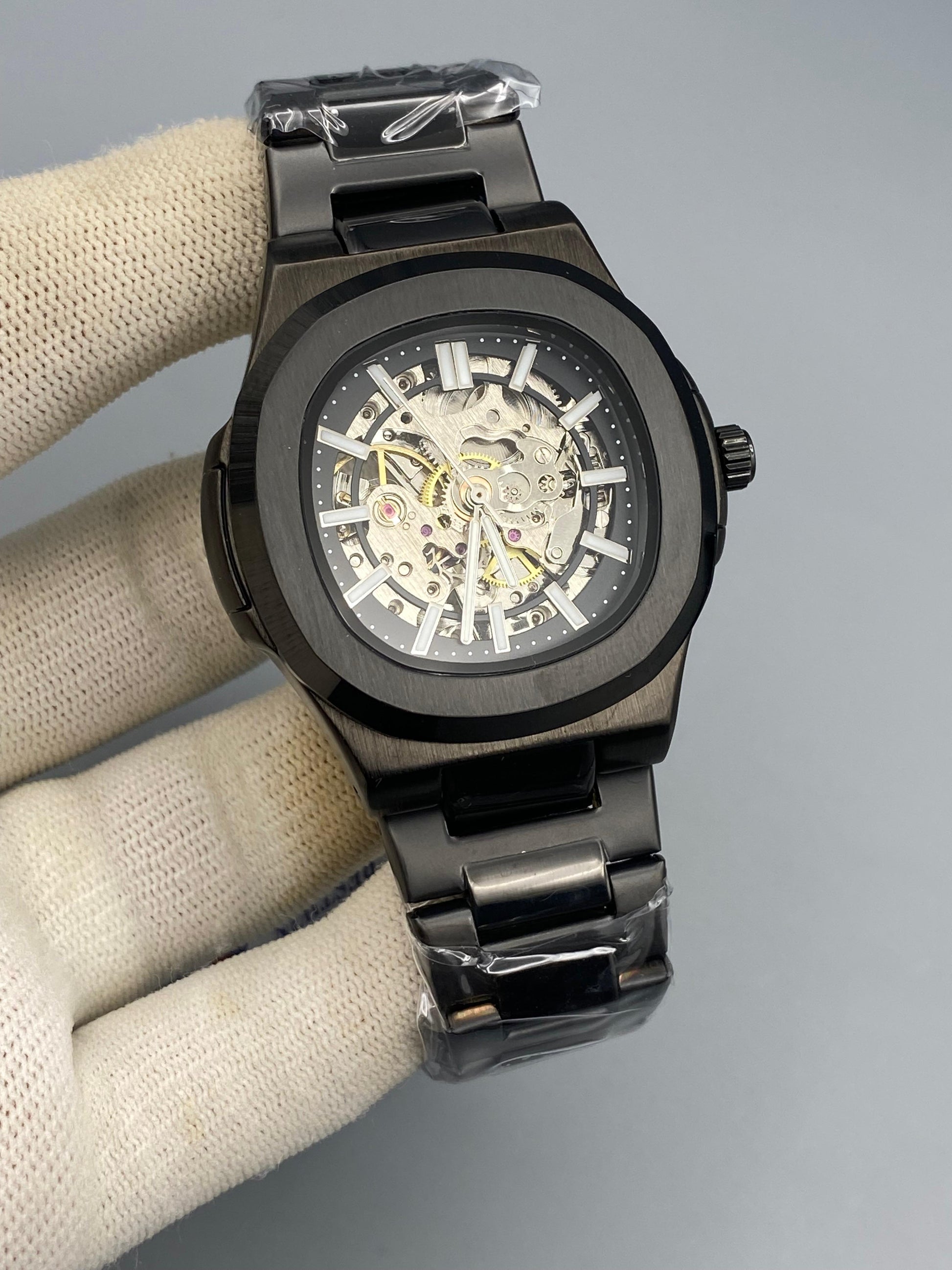 Bestwin Skeleton Automatic Watch – Premium Steel Chain{BLACK}